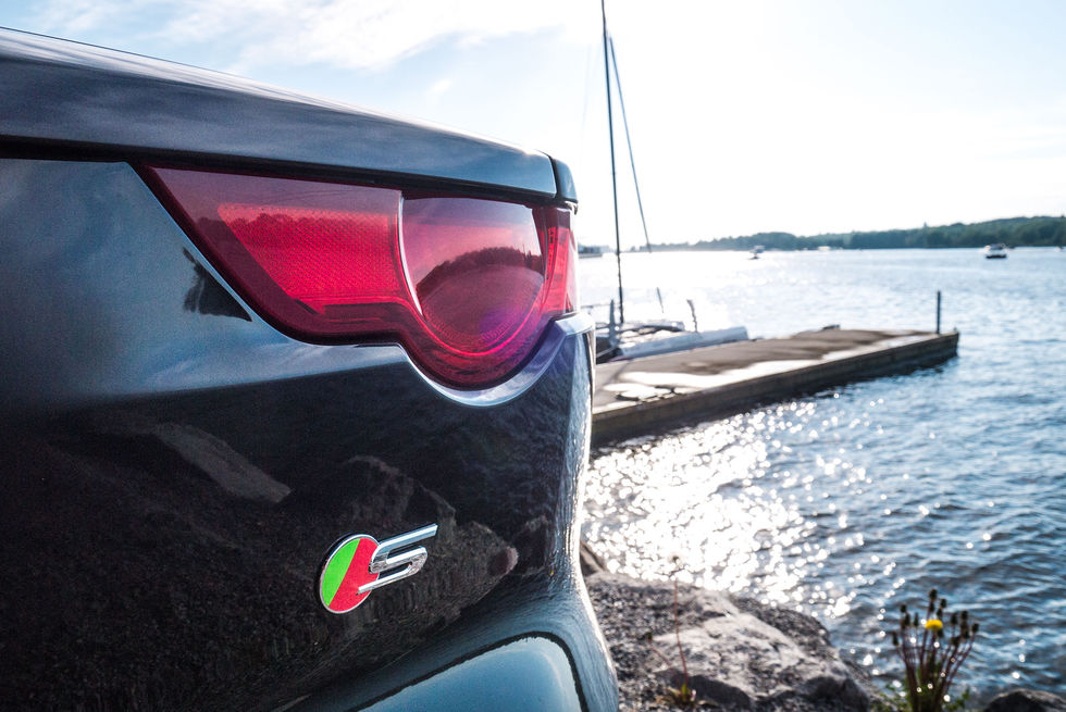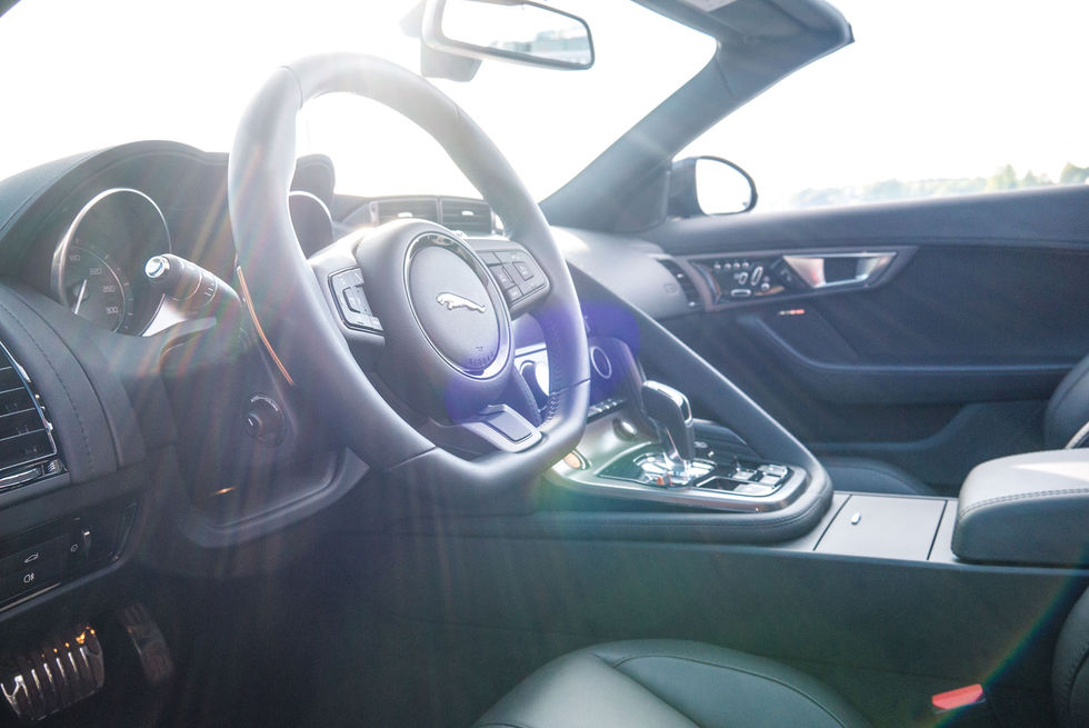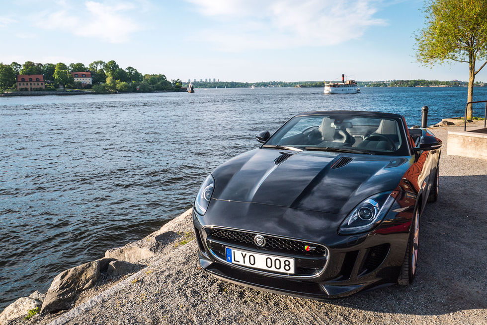 InledningOch varför vill jag inte det då? Jo. 911 är 911. Och F-Type är F-Type. Två helt olika bilar även om de vill åt samma håll. Men varför kan de inte bara få vara två olika modeller? Jag köper ju inte en Jaguar för att jag vill att den ska vara som en Porsche, och tvärtom. Jag köper ju en viss typ av bil för att jag vill ha just den, och för att den bjuder på något som konkurrenten inte har. Det vore ju väldigt tråkigt om alla bilar helt plötsligt alla strävade mot samma mål och i slutändan blev samma sorts bil. Sen förstår jag ju givetvis att man som biltillverkare måste sträva mot att knocka konkurrenterna, men enligt mig behöver det inte ligga i att man knäcker den andres prestanda, varvtid eller bromssträcka. Det kan handla om att bjuda på en helt annan upplevelse. Och det lyckas Jaguar med.KörkänslaNär man i bakhuvudet har snacket med om att F-Type ska utmana 911 stiger man ju inte direkt in i den här bilen och tror att det är vilken Jagga som helst. Och det är det inte heller. Det första man lägger märke till är hur tajt den känns, och är. Här sitter man lågt, kramas hårt av stolarna och det är inte en mil till passagerarstolen. För även om man också kryper in i Jaguars XK-modeller så är detta en helt annan upplevelse. Det märks att man sitter i en ny modell, som är byggd för att vara en sportbil.Ratten är härligt tjock och precis lagom i storlek. Bakom skymtar de små paddlarna som klätts med orange gummi. Kanske lite väl vågat färgval men man ser de ju tydligt i alla fall. Och gummimaskeringen gör att man vill använda dem, till skillnad mot motsvarande i hinkplast. Växelväljaren på mittkonsolen har bytts ut från den snygga, men något långsamma, runda klossen som sakta steg upp från sin gömma när man startade bilen. Istället får man nu något som ser ut att vara hämtat direkt från BMW, men som känns så mycket bättre i handen. Utformningen för direkt tankarna till gamla TV-spel och eftersom knappen för att lägga i D-läget är vid pekfingret kan jag inte sluta leka att det är en styrspak med skjutknapp på. Under spaken bor en helt ny åttastegad Quickshift-låda från ZF, något manuellt alternativ finns inte för tillfället. Lådan tillsammans med start/stopp-systemet hjälper till att hålla nere förbrukningen, moderniteter som nu för tiden sitter i nästan varenda ny bil, oavsett hur sportig den än må vara.Bilen startas med knapp och redan här förstår man vad denna bil vill markera, sport. Jag har testat många bilar som låter en hel del när de startas men jag har aldrig tidigare förut varit med om en bil som förutom att bröla till även släpper en ljudlig knall ur avgassystemet när man startar den. Foten på bromsen, in med start-knappen och pang! Något oväntat och nästan lite pinsamt om man ska iväg på kvällen i ett lugnt område. Härligt avgasljud i all ära, men den där smällen känns nästan lite överdriven.ZF vet hur man bygger växellådor och det är inget undantag i F-Type. Växlarna halas i mjukt och fint och så länge man inte gasar hårt eller använder paddlarna märks de knappt. Snabb som tusan är den också. Likheterna med Volkswagens DSG-låda när man hastigt manuellt växlar upp är slående, som att stega över ett par tangenter på ett piano nästan. Bilen känns rapp på vägen och det känns faktiskt inte som att man sitter i en Jaguar. XK och XF är monsterstora i jämförelse och jag kommer på mig själv med att nästan tycka att bilen känns för liten. Jag får sänka ner stolen för att se ut ordentligt och om jag inte visste bättre skulle jag tro att bakdäcken nosade mig i häcken där jag sitter. Men det känns bra, bara för att det inte är likt Jaguar. Jag älskar deras R- och RS-versioner men de är helt enkelt inte tillräckligt sportiga. Här har man tagit fram ett litet badkar som nästan känns som en Mazda Miata och skopat ner en rolig motor, vilket enligt mig är ett bra recept.Utan problem kastas bilen runt i kurvor och den känns oerhört välbalanserad. Enligt Jaguar är viktfördelningen nästintill 50/50, vilket givetvis är det mest optimala när man vill ha fram en rolig bil. F-Type känns väl ihopsatt och där de tidigare Jaggorna har varit tunga och något sega att flänga omkring svarar den här direkt. Inget tvek, inget jämmer och utan att kännas nervöst. Motorn som är hämtad från XJ och XF gör allt för att bidra och levererar även den hela tiden. 380 hästar i en bil av denna storlek räcker gott och väl. Det är ingen herrejösses-upplevelse när man trycker på men kraften kommer jämnt hela tiden och motorn känns aldrig orkeslös. Kompressorn som fått ett högre laddtryck än i vanliga F-Type med V6:a finns där under men gör sig inte påmind i form av något vinande ljud utan trycker bara på.Vid växelväljaren sitter det diverse olika knappar som gör olika roliga saker. En är flagg-symbolen som vi tidigare har sett i Jaguars bilar. Den aktiverar det dynamiska läget och gör att bilen alltid levererar maximalt vridmoment vid växelbyten och att accelerationen från stillastående till 100 km/h optimeras. Dessutom blir ratten lite trögare att styra med. Detta läge kopplas in via ett något plastigt drag-reglage som liknar något som hör hemma i ett flygplan. Bilen blir genast aggressivare, speciellt vid växlingarna och drar mer än gärna ut på dem innan det är dags att smacka i nästa. I manuellt läge hindras även lådan att efter en stund växla upp automatiskt, du växlar alltså helt och hållet själv här. Inget för stadskörning kan jag berätta.Vad som däremot lämpar sig för stadskörning, och all annan körning för den delen, är knappen märkt med en avgasrörs-symbol. Den öppnar ventilerna i avgassystemet och bjussar på ännu mera bröl. Vid lite lägre varv och myskörning gör den inte så stor skillnad, men när man trycker på är den enorm. Istället för ett