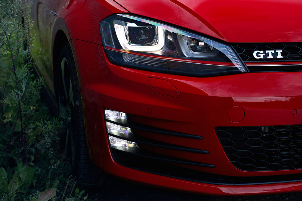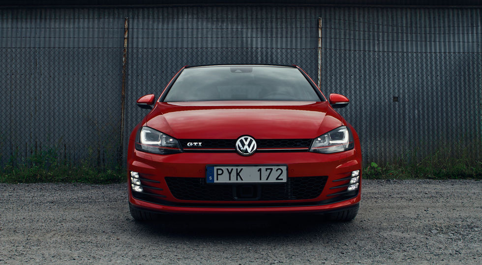 InledningJag var långt ifrån ens påtänkt när den allra första Golfen introducerades 1974. Men jag minns den som igår, eftersom min mamma hade en illgrön MK1:a. För övrigt den första bilen jag någonsin körde, och givetvis fick motorstopp med. Men glad var jag ändå och även om det här inte var någon GTI kändes den rätt så pigg och kvick ändå. Jag kan bara föreställa mig hur det måste ha varit att kliva in i en riktigt GTI när den kom. En ny typ av bilar var alltså född och förutom Golf-klassen har Volkswagen alltså även introducerat GTI-klassen till folket. Inga små bedrifter direkt. Och det har hänt en hel del sedan dess. Idag är Golfen större än någonsin och nästintill en minibuss i jämförelse med originalet. Tillverkarna fortsätter att slänga ur sig modeller som alla vill ta upp kampen med urfadern och det kan inte vara det enklaste uppdraget här i världen att skapa en ersättare till GTI. Och den enda som lyckas med det är Volkswagen själva. Visst finns det konkurrenter som ligger alldeles bakom buskarna och lurar men det finns bara en GTI. Och nu har den blivit så gammal att den är inne på sin sjunde generation.MotorFör att en bil ska få kalla sig för en GTI så måste det vara lite pulver under huven. Och det är det i denna. 230 hästar plockas ur den två liter stora fyran med turbo. Ett ganska så ordentligt lyft från originalets 110. Men tiderna förändras ju som vi vet och det lilla tunna plåtskalet man då skyddades av är ersatt med ett betydligt tyngre och robustare. Och då krävs det lite mer effekt för att sätta fart på grejerna, kanske inte 230 men ska det vara så ska det vara. Se bara till vridet, 350 Nm, det är lika mycket som i Golf R.Ett ganska dovt brummande är det man möts av efter att ha vevat igång allt via startknappen. Ger man lite torrgas får man även höra lite turbovissel. I med drive-läget på DSG-lådan utan att göra några andra inställningar och iväg. Bilen känns som vilken annan Golf som helst, dock kanske lite stötigare över de första guppen jag stöter på. Men annars är det bekvämt, dämpat och sansat. Jag brummar vidare och märker snabbt hur välbyggd den känns. Inget gnissel eller knak någonstans och det känns nästan som att jag sitter i en premium-bil från någon av de andra tyskarna. Jag märker inte när växellådan byter kuggar och styrningen känns sådär lätt och lyxig. Efter ett par rödljus står jag längst fram och bestämmer mig för att börja släppa på lite då motorn kommit upp sig i temperatur. Bilen svarar direkt och även om jag är rätt så bortskämd med betydligt effektstarkare och kvickare bilar sticker den iväg bra. Förvånansvärt bra faktiskt. Och när lådan växlar från ettan till tvåan får jag även en arg och snabb avgasknall som jag verkligen inte hade förväntat mig. Jag kommer på mig själv med att garva högt och bli positivt överraskad över att bilen lät så här bra innan jag ens börjat pilla på några inställningar. Med denna trevliga upplevelse i bagaget stannar jag till lite snabbt för att sätta mig in i hur jag gör för att få fram ännu mera sportighet i bilen.Mittkonsolen bjuder på en riktigt bra skärm. Jag brukar överlag inte vara speciellt förtjust i pekskärmar i bilar men den här funkar faktiskt väldigt bra. Den känner av när fingrarna närmar sig och visar då större versioner av knapparna man bara såg lite grann av tidigare till exempel, vilket jag tycker är rätt så smart. Den är också snabb och det händer något direkt när man trycker, för är det något jag inte tål så är det lagg. Dessutom är det superenkelt att ansluta sin telefon via blåtand och få upp kontakter, spela musik och annat. Något som inte alls är lika självklart i betydligt dyrare bilar. Via skärmen styr man också bilens temperament. Vid växelväljaren finns det en knapp som heter Mode och när man trycker på den dyker det upp ett antal olika val på skärmen. Jag var i Comfort-läget så jag knappade snabbt över till Sport istället. Där finns även ett Eco-läge och ett som heter Individual där du själv ställer in vad som ska hända.Med sportläget i bar det iväg igen och genast känner jag hur bilen ställer sig på tårna. Styrningen blir trögare, dämpningen hårdare och gasresponsen snabbare. Precis som det brukar när man är och fingrar på såna här knappar alltså. Växellådan vill även ligga på så låg växel som möjligt hela tiden och envisas med att inte växla upp till tvåan trots att jag kör i typ 40 km/h. Ganska bra varv på motorn alltså. Och det vill man ju ha, om man kör på bana eller på en kurvig landsväg någonstans, inte i stan. Lösningen är att kasta över växelspaken till manuellt läge och antingen växla upp och ner med den själv, eller med paddlarna bakom ratten. Eller paddlar och paddlar, små tryckknappar utan direkt känsla skulle jag vilja kalla dem. Men hur som helst, med denna konfiguration kan du ha sportläget i och växla när du själv vill, det gillar jag bäst. Det känns direkt som att det är så här bilen ska köras. Bäst av allt kanske en manuell låda skulle vara men nu får jag nöja mig med en kvick dubbelkopplingslåda (ja, i den här sitter det faktiskt det) istället. Och lådan gör verkligen ett bra jobb, långt mycket bättre än om jag skulle vispa runt med en manuell.Nu har höfterna fått sitta alldeles för länge mellan sidostöden i stolarna utan att få känna om de gör någon nytta och det är dags att börja köra lite mera "aktivt" som det heter. Bägge händerna på ratten, ingen musik på stereon och stretching av höger vad är det som gäller nu. Iväg och det är nu GTI-känslan kommer på riktigt. Volkswagen har för första gången stoppat ner ett progressivt styrsystem i en av sina bilar och det sitter i den här. Systemet gör det förutom lätt att parkera även att den blir mer stabil i högre farter, och 