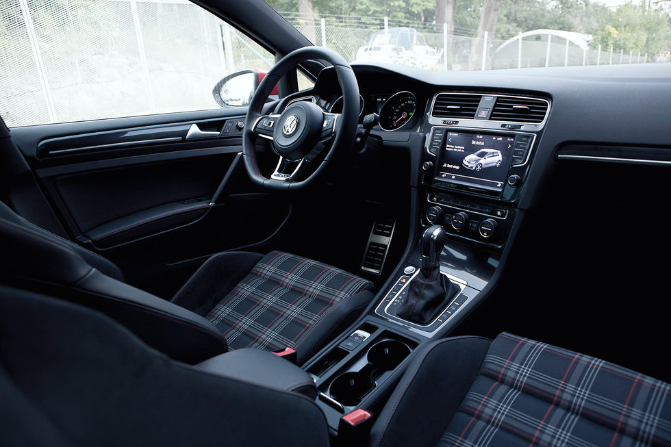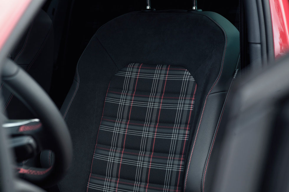 Den allra första GTI:n hade en skotskrutig sätesklädsel. Sätena i den sjätte generationen Golf GTI var klädda i ”Jacky”-tyg och i övergången till den nya GTI-generationen har denna arbetats om och fått namnet ”Clark”. Naturligtvis är den fortfarande skotskrutig.