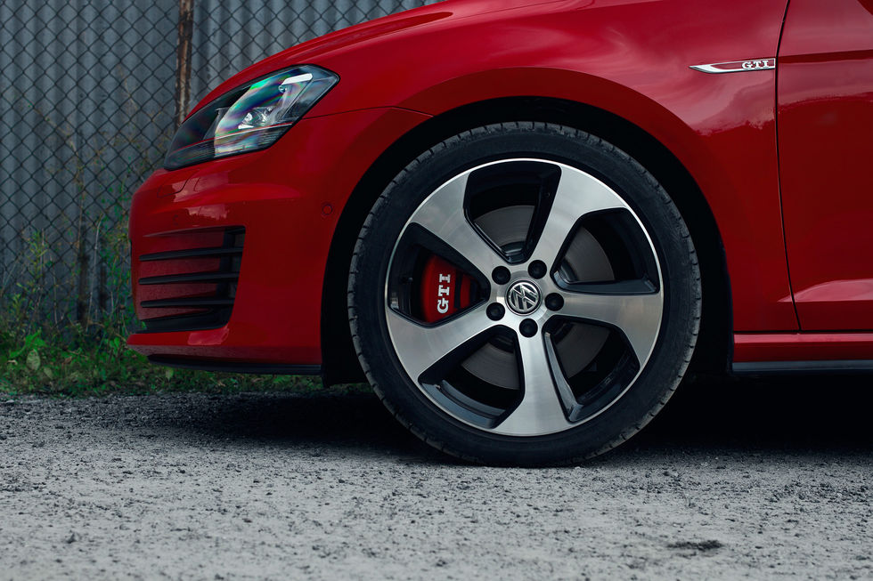 Volkswagen har vidareutvecklat GTI-fälgarna ”Denver”, ”Detroit” och ”Glendale” vars karakteristiska design från den förra modellen går igen i de nya 17 tum stora lättmetallfälgarna ”Brooklyn”. Fälgarna är skodda med däck av dimensionen 225/45. Det kommer också att finnas 18"-fälgar som tillval för GTI.