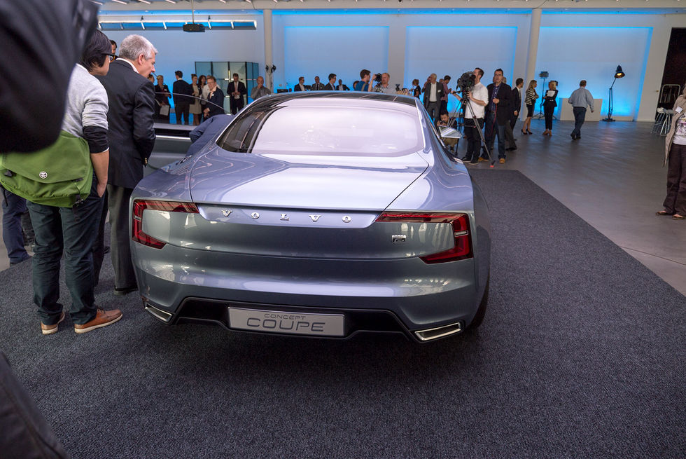 Concept C står för Coupé och man har valt coupén av flera anledningar, varav en är att det är rätt så långt från det som Volvo är kända för - kombin. På så sätt slipper man att folk gör jämförelser med kommande “riktiga” modeller utan man kan sätta fokus på den nya designen.Det starkaste elementet är så klart de nya lyktorna och grillen i fronten tillsammans med lyktorna i rumpan. I övrigt har man försökt hålla antalet linjer och veck till ett minimum. Vinkeln på fönstret vid baksätet är också viktigt och kommer att synas i samtliga framtida modeller. De fantastiska handtagen kommer med all säkerhet inte att komma i produktion.På insidan har det också hänt mycket och här hittar vi massor av intressanta detaljer. Inspirationen till konceptet har hämtats från väskkustens miljö - mörkblått hav, grå sten och drivved. Man påpekade dock att det här var ett scenario att hämta inspiration från, här i Sverige har vi ju fyra årstider och massor av olika miljöer att inspireras av.I mitten hittar vi en stor touchskärm som har all fokus. Gränssnittet i denna fick vi inte se alls, officiellt för att man inte ville fokusera på det i dag men jag tror helt enkelt inte att det är färdigt. Under skärmen hittar vi några av de få knappar som finns, och dessa kommer att funktionsmässigt att finnas med i produktion, dock i betydligt enklare versioner. Stilen på vredet i mitten hittar också till blinkersspaken men även här kommer produktionsversionen att se annorlunda ut - vilket är tur.Under skärmen hittar vi växelspaken som främst är ett stort kristallblock. I produktion? Knappast.En fantastisk detalj som bara MÅSTE komma i produktion är att man på säkerhetsbältet har skrivit "Since 1959". Hör ni det Volvo? Det måste i produktion! Fantastisk är också den lilla flaggan.Annars finns några sköna detaljer, under baksätet hittar man plats för "handbagage", framsätena "flyger" (lär inte komma till produktion tyvärr) och man kan genom ett hål se de snygga pedalerna från passagerarsidan.Concept C är snygg på bild och ännu snyggare i verkligheten. Framförallt känns detta premium på riktigt. Om Volvo kan ta den här stilen och den här känslan i produktion har vi ett Volvo som äntligen är premium på riktigt. Och det är på tiden.P1800:an då? Man var tydlig med att påpeka att man inte gått till museet och tittat för att hitta inspiration, men helt naturligt, om man kan sin Volvohistoria, har en del linjer blivit rätt lika. Och så är den dödligt läcker. Concept C är det första konceptet av tre från Volvo som kommer den närmsta tiden.Foto: toppbilden: James Holm, övrigt: Roger Åberg