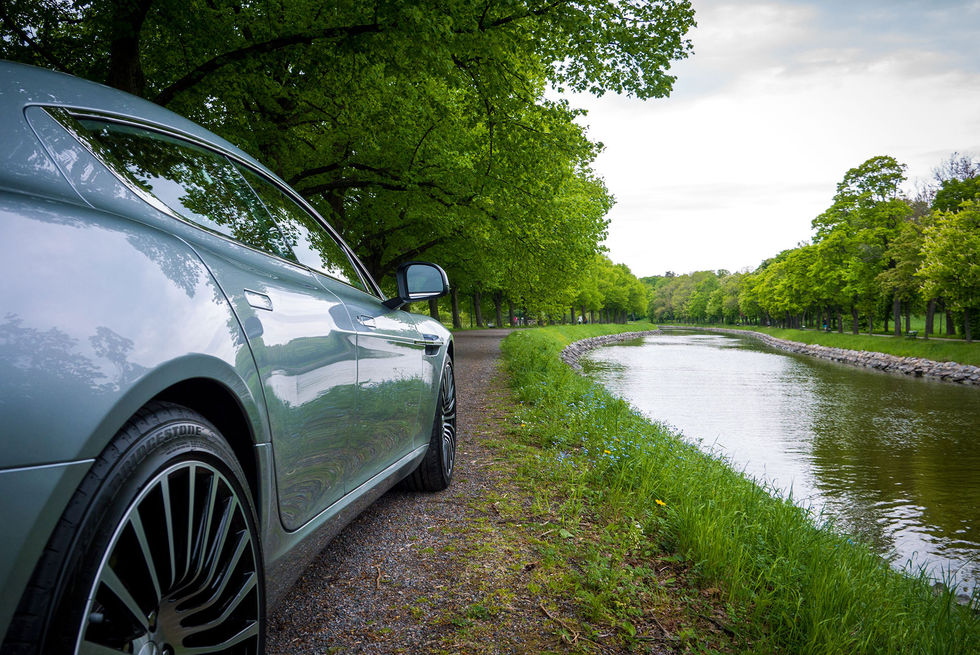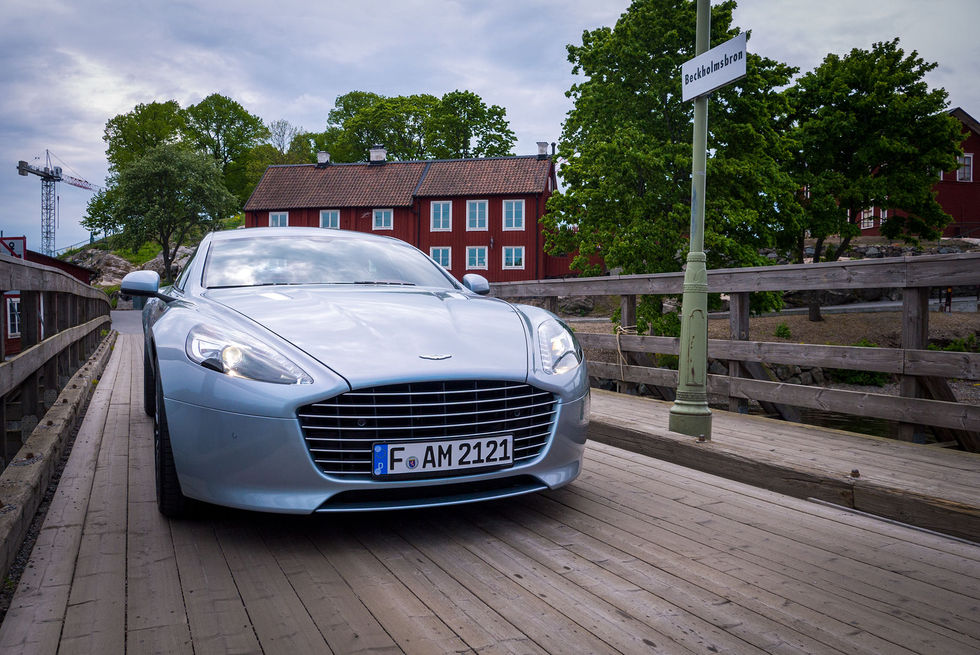 InledningSäg hejdå till Rapide och hej till Rapide S. Det här är versionen som tar över och det går alltså inte längre att få den effektsvagare versionen. Nej, ska det vara så ska det vara. 80 hästar upp från föregångaren, mer banapassad fjädring och som alltid, ett helt makalöst fantastiskt motorljud. Men behöver man allt det här? Självklart inte, men man vill ha det.InteriörFör er som aldrig har entrat en Aston Martin kan jag berätta att det är en ganska så speciell upplevelse. För det första öppnas dörrarna genom en slags spak som man trycker in i ena änden och sedan tar tag i och drar. Men man får vara med på vad man gör, för det är ingen lätt pjäs man fångar upp med handen. Dörren är tjock och tung och öppnas snett uppåt. Inte som en Lambo-dörr men med ganska så brant vinkel ändå, allt för att undvika att skada den mot de där dumma trottoarkanterna. Smart drag.När man väl har tagit sig igenom processen att öppna och studera dörrens konstruktion och hantverk, för det gör man de första gångerna, så kryper man in i den mysiga och ombonade kupén. Låt dock inte storleken på en Rapide lura er, det är inte överdrivet gott om plats här inne. En Porsche Panamera känns enorm i jämförelse. I den här är framrutan mycket brantare vilket gör att taket sitter lägre och att allt kommer mycket närmre. Men det är ingen nackdel, det gör bara att bilen känns ännu tajtare och att man ganska så snabbt glömmer av att det faktiskt är över fem meter bil man baxar omkring på.Väl på plats möts man alltså av mycket trevliga materialval och det skulle nog utan problem gå att lägga några timmar på att bara studera allt, och hur det är utfört. Det är verkligen ett hantverk man beskådar och att känna och trycka på alla olika knappar ger en inre tillfredsställelse, även om mittkonsolens knappar fortfarande osar lite Volvo. Varje knapp har dock rätt motstånd i sig och svarar tillbaka till personen som trycker på ett angenämt vis. Paddlarna bakom ratten är fast monterade och följer alltså inte med när man svänger utan stannar snällt på sin plats. Ibland gillar jag detta och ibland inte, men här tyckte jag att det passade faktiskt. Man vet alltid vilken paddel som är till för att växla ned eller upp oavsett hur man rattar. Paddlarna är dock kanske inget som Rapide-föraren använder dagligen då bilen sköter växlingarna alldeles utmärkt själv och det inte är en racerbil man framför.Denna läckerbit var utrustad med oxblodsrött läder, en ganska så stor kontrast till bilens lack som var ganska så anonym. Jag trodde att det röda skulle sticka lite väl mycket i ögon men efter en stund kom jag överens med det och det slutade faktiskt med att jag gillade att interiören var lite mer vågad än utsidan. Lädret blandas med mocka och det är här jag älskar hur Aston Martin inte tummar på upplevelsen. Efter att ha suttit och fingrat lite på handtaget i dörren upptäckte jag att det glipar lite och liksom är en bit ut från själva dörren. Självklart var då baksidan på handtaget klätt med mocka. Ett ställe som köparna kanske aldrig kommer att klämma på eftersom de nog inte är lika klåfingriga som jag är, men att det ändå inte har lämnats åt slumpen tycker jag är trevligt. De är de små detaljerna som gör det.Baksätet bjuder på två separata stolar och inte helt pjåkigt med plats. I denna fanns även underhållning i form av skärmar i framstolarnas nackstöd och trådlösa lurar så att man kan titta på film utan att bli störd, eller störa någon annan. Precis som där fram är även dessa stolar både ventilerade och uppvärmda när man vill det. Får man inte turen att köra ska man alltså inte ha det sämre än någon annan. Med ett knapptryck på vardera sida fäller man ena halvan av stolarna och får på så vis ett plant golv att lasta in prylar på. Den lilla väggen i bagageutrymmet går alltså att fälla ned. Helt okej lastutrymme för golvklubborna.ExteriörFör det otränade ögat är det kanske svårt att se att det här är en lyft version av Rapide. Men den ännu mer enorma grillen avslöjar, även om vi i Sverige måste smacka dit en oerhört ful registreringsplåt som förstör allt. Baklamporna är också de något uppfräschade, samt att bakluckan har fått sig en liten ankstjärt. Ett par speciellt framtagna fälgar till det och mer behöver man inte. Designen är i mina ögon redan komplett och Rapide har sedan dag ett fungerat i mina ögon.KörkänslaDen alltid lika trevliga klossen till nyckel i glas stoppas in i mittkonsolen och hålls nere tills motorn ryter igång. Det är ett gällt skall som möter föraren och genast blir det tydligt att någon eller några har ägnat lite tid till att stämma av det här avgassystemet rätt. I med första växeln med antingen paddeln eller knappen som lyder "D" högst upp på instrumentpanelen och iväg. Ett härligt och dovt muller sprider sig mellan husväggarna när jag sakta glider fram utan att röra gasen, och bara låter bilen driva på växeln. Det är något graciöst över att bara smyga fram med vetskapen om att det finns effekt i överflöd. De enorma fälgarna speglas fint när jag passerar ett skyltfönster och det är här man lägger märke till hur ofantligt stor den här bilen faktiskt är. Att Aston Martin ändå har lyckats nästintill maskera dessa bakdörrar är enligt mig helt fantastiskt. Det är mer än en gång jag har misstagit just Rapide för att vara en DBS. Det är inget dåligt betyg det.Innan jag lär känna bilen tar jag det väldigt försiktigt och det är extra mycket avstånd till både bilar och olika hinder innan jag vet var jag har den på vägen. Väl inne i stan märker jag förutom dess storlek hur populär den är. Nackar vrids ur led och långa suktande blickar följer bilens alla vinklar och vrår. En del tar sig till och med extra tid för att spana in emblemet i 