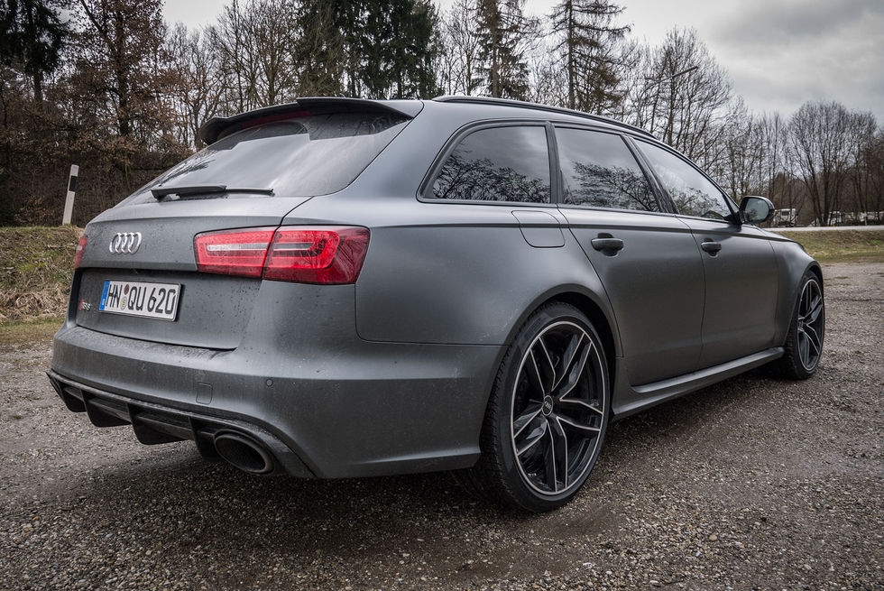 InledningAtt dyka genom molntäcket med planet och se att regnet öser ner var ju inte det roligaste direkt, men inte mycket att göra åt. Efter en kort genomgång fick vi springa ut på lekplatsen och välja bilar, jag och min co-driver siktade in oss på en av de få mattlackerade RS6:orna som fanns och hoppade in. Jag började i passagerarstolen för ovanlighetens skull. Vi följde den inprogrammerade rutten och efter en stund var både vi och motorn varma och det var dags att börja testa vad bilen gick för. Dynamic Mode on.KörkänslaSom passagerare upplever man ju åkturen på ett något annorlunda vis än som förare. Jag upplevde ett ordentligt sug i magen vid varje gaspådrag, vilket oftast inte är lika framträdande när jag själv är den som sitter bakom ratten. Det märktes redan i Comfort-läget att den här bilen ruvar på mängder av kraft som bara ville släppas lös och givetvis skulle vi bevilja detta. 560 hästar kom sparkandes i ryggen och kraften känns nästan oändlig. Det matar på hela tiden, växel efter växel, tills den åttonde kuggar i och hastigheten bara fortsätter att stiga. Det våtstänkta underlaget gjorde att vi av säkerhetsskäl höll tillbaks lite trots att det var fri fart, men hade det bara varit torrt hade det inte varit några som helst problem att segla upp till toppfarten på 305 km/h. Utan att det hade blivit obekvämt.Åkturen rakt fram är så fantastiskt väl maskerad och odramatiskt att man snabbt blir oerhört fartblind. Helt plötsligt körde vi i 250 km/h, och samtalade i vanlig samtalston som om vi "fiskörde" i 130 km/h på svensk motorväg. Inte ens motorn gav ifrån sig något ljud, så länge man inte var tung på gasen. Bilen bara sköt fram som en missil på räls. Som väntat. Men det är just det här med fartblindheten, och hur sjukt snabbt man kommer upp i olagliga hastigheter med den här bilen.Turen fortsatte av från motorvägen och in på lite mindre vägar, och det är här man märker att RS6 Avant är ett stort åbäke. Lite småbyar passerades och man fick på sina ställen hålla koll på var däcken befann sig vid möte, för att repa de där 21 tum stora fälgarna skodda med 285-däck (runtom) var inget någon utav oss ville. På dessa vägar kändes bilen nästan lite för stor, och för snabb. Vid lite mer aktiv körning kommer man helt enkelt upp i fart alldeles för snabbt, och måste då stå på bromsen igen. Och när man väl gör det stannar bilen, direkt. Testexemplaret var utrustad med keramiska bromsar (tillval, 100 300 kronor extra) som tog upp hela utrymmet innanför framfälgarna och som bettade något otroligt bra. Totalt överdrivet att ha ett par såna här bromsar på en bil av denna sort, men det såg fett ut, och funkade riktigt bra.Trots sin storlek ligger bilen dikt an mot vägen. Det fick mina inälvor känna på när snabba filbyten testades. Det är smått fantastiskt att en kärra med en tjänstevikt på över två ton (-90 kilo jämfört med föregångaren) kan förflytta sig såpass snabbt, utan någon som helst rullning i karossen eller liknande. Som ett magnetsuddi på en whiteboard. Den monstruösa effekten, samma som i R8 GT, är ju också det en smått bisarr sak. Den här bilen gör alltså 0-100 km/h på bara 3.9 sekunder, vilket är samma som för R8 V10 Coupé. Det är lite svårt för hjärnan att ta in. Men det märks när man trycker på. Du trycks framåt av effekten samtidigt som kroppen trycks bakåt i stolen. Och allt detta samtidigt som du är omgiven av massa lyx, sitter i bekväma stolar, kan ha ett gäng ungar i baksätet och shoppingpåsar i bagage-utrymmet. Gotta love 2013.MotorAtt Audi bytt ut V10:an mot en dubbelturbo-V8:a kanske grämer vissa. Men det är bara att leva med. Och när den nya spisen dessutom är bättre på alla möjliga sätt och vis (förutom då att man inte länge kan säga att man har en V10:a) så finns det ju egentligen inget att klaga på. Visst, den här har 20 hästar mindre än föregångaren, men den både går snabbare, drar mindre och släpper ut mindre. Det kan det vara värt i mina ögon. Förbrukningen har sänkts med 30 % och en RS6 Avant drar nu på pappret så lite som 0.98 liter per mil och släpper ut 229 gram CO2 per kilometer. Siffror som köparen av en RS-modell kanske inte bryr sig överdrivet mycket om, men det är ju en klar förbättring. Motorn är dessutom mindre vilket ger en lägre tyngdpunkt och i sin tur en bättre viktfördelning. De små turbo-snurrorna sitter placerade ovanpå motorn vilket gör att avgasrören fram till dessa kan göras mycket kortare. Det här gör att fläktarna börjar snurra tidigare och man slipper ketchup-effekten. Gasresponsen är blixtsnabb men om man bråkade lite och körde växellådan i manuellt läge på någon av de högre växlarna hände det inte mycket om man tryckte fullt i lägre hastigheter. Då behövdes det ett par sekunder innan motorn vaknade till liv igen. Detta var också märkbart när man inte körde i Dynamic-läget och hade såsat en stund, och sedan trampade fullt. Då var det precis som om att man petade på en sovande björn med en pinne, och det tog några ögonblick innan den började frusta.LjudetRS-modellerna låter alltid trevligt men nu för tiden är ljudet delvis "fejkat". Motorljudet förstärks nämligen via högtalarna då bilen i sig är så bra ljudisolerad. Lite tråkigt tycker jag och i vissa lägen låter det hela lite väl artificiellt. Den här motorn har cylinderavstängning så när man inte trycker på stängs halva cylinderbanken av. Men för att man inte ska skämmas kompenseras ljudet upp så att det fortfarande ska låta som en V8:a. Det gör det inte, utan blir istället något slags konstigt buller istället för skön motorsång. Ett ljud man som tur är inte upplever allt för ofta men när det väl dyker upp är det inte så roligt. Bilen låter mest i Dynamic-läget och då morrar den på riktigt gött. Det går att få til
