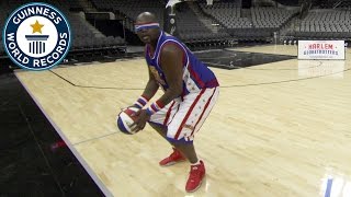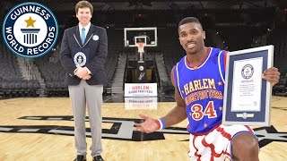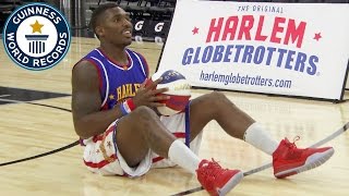 Harlem Globetrotters kan det här med att kasta basketbollar och vill ju som så många andra såklart ha många världsrekord i Guinness eftertraktade bok. Här ser vi när en av medlemmarna sätter så många trepoängare han kan under en minut.Om ni trodde att gänget skulle nöja sig med bara ett nytt rekord när Guinness var på plats har ni fel, fler som sattes samma dag ser ni nedan.