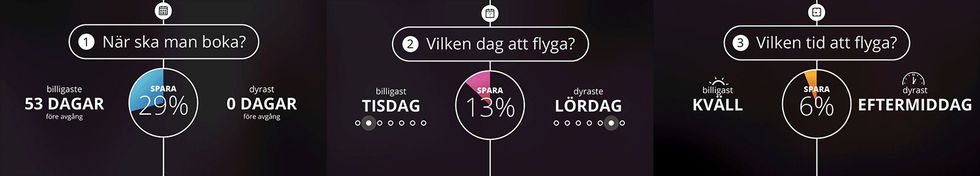 "Det kan löna sig att vara ute i god tid när man bokar resa. I allmänhet är det bäst att boka två månader i förväg. Att resa på tisdagar och kvällar är också heta tips för bästa pris, däremot ska man akta sig för lördagar."