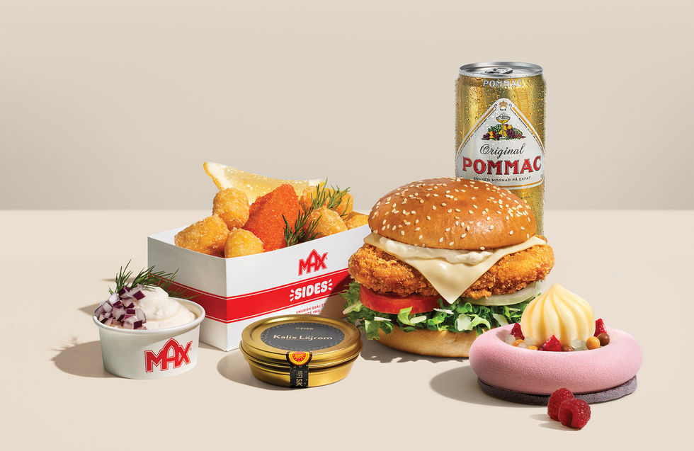 Förra året presenterade hamburgerkedjan Max en bankettmeny som en vinkning till Nobelmiddagen. Det handlade om en trerättersmeny som bestod av potatiscylindrar med 30 gram Kalix Löjrom, hackad rödlök, gräddfil, dillkvist och citron till förrätt. Huvudrätten var en Grand Chicken Parmesan eller vegetariska Crispy Supreme och till efterrätt fick man hallonpaj med vaniljglass.