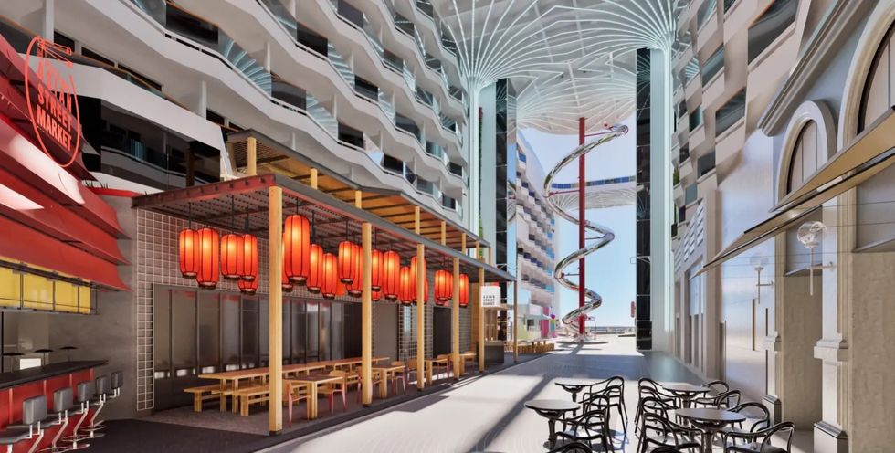 På promenadstråket kommer man även att kunna spana in en tolv meter lång drakskulptur i rostfritt stål som hänger tio meter ovanför däck. Den har flera hundra speglar på sig och tusentals LED-ljus som kommer att lysa upp på kvällarna.