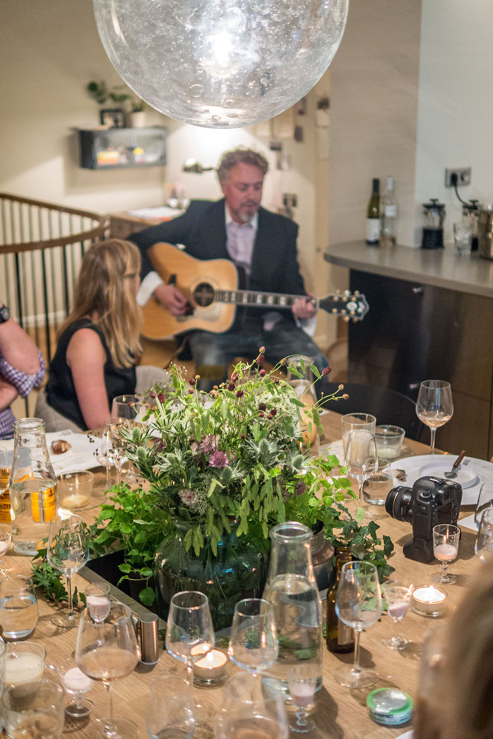 I bland är det extra trevligt på jobbet, som igår när IKEA bjöd in till supper club. Konceptet är ganska kul - bjud in ett gäng för varandra okända människor och käka middag. Låter så enkelt men är något som vi svenskar drar oss för att göra, okända människor är lite läskigt. Baktanken var så klart att de ville visa upp sin nya köksserie Metod och för att verkligen visa dess briljans flög man in vinnaren av MasterChef 2012 Christine Ha som har det lite jobbigare i köket eftersom hon är blind. Kaos är med andra ord inte hennes melodi utan ordning och reda är det som gäller. Christine kommer från Texas och gillar att blanda sydstatssmaker som cajun med hennes vietnamesiska bakgrund. Vi börjar med just cajun i form av cracklins gjorda på friterat grisskinn med cajunkrydda. Riktigt crispy och gott, grym start. Vi snackade en del med Christine om hur den förlorade synen har påverkat hennes matlagning och det kändes verkligen som att det gjort att hon var mycket försiktigare eller snarare mer finstämd med smakerna än vad en "vanlig" kock är. Cajun + vietnam känns ju som hettans och styrkans paradis men Christine levererade något helt annat. Andra rätten var en papayasallad som när man äter den i Thailand är dunderstarkt - den här versionen var helt åt andra hållet. Fräscht och inte vad man förväntade sig. Sedan kom nog min favorit, fläsksida som tillagats i sous vide i en ångad bulle. Brödet gör hamburgaren heter det ju och det lite söta brödet var en lysande kombination med fläsket! Efter det blev det nudelsoppa som jag verkligen kan gilla. Även denna var väldigt lugn i sin framtoning och det kan jag uppskatta även om det kanske inte är en rätt jag skulle tillaga för att imponera på folk som förväntar sig en orgasm av smaker. Det var klart imponerande att se Christine jobba och konceptet med supper club är roligt. Jag har länge funderat på att börja med fredagspasta - bjuda hem lite folk och göra en enkel pastasås och umgås och jag blev än mer pepp på att göra det nu, och framförallt att bjuda hem lite människor som inte är bland de gamla vanliga polarna. Att lära känna nytt folk är roligt!En bonus på kvällen var att Eric Gadd kom förbi och lirade två låtar, kanske lite svårt att få till på fredagspastan. Någon som kändes mer realistiskt var det snickargjorda bordet med en ho i mitten. I går var den fylld med växter men jag tänker snarare ett berg med is att ställa öl och vin på festen eller en plats att dumpa smutsiga tallrikar till vardags.